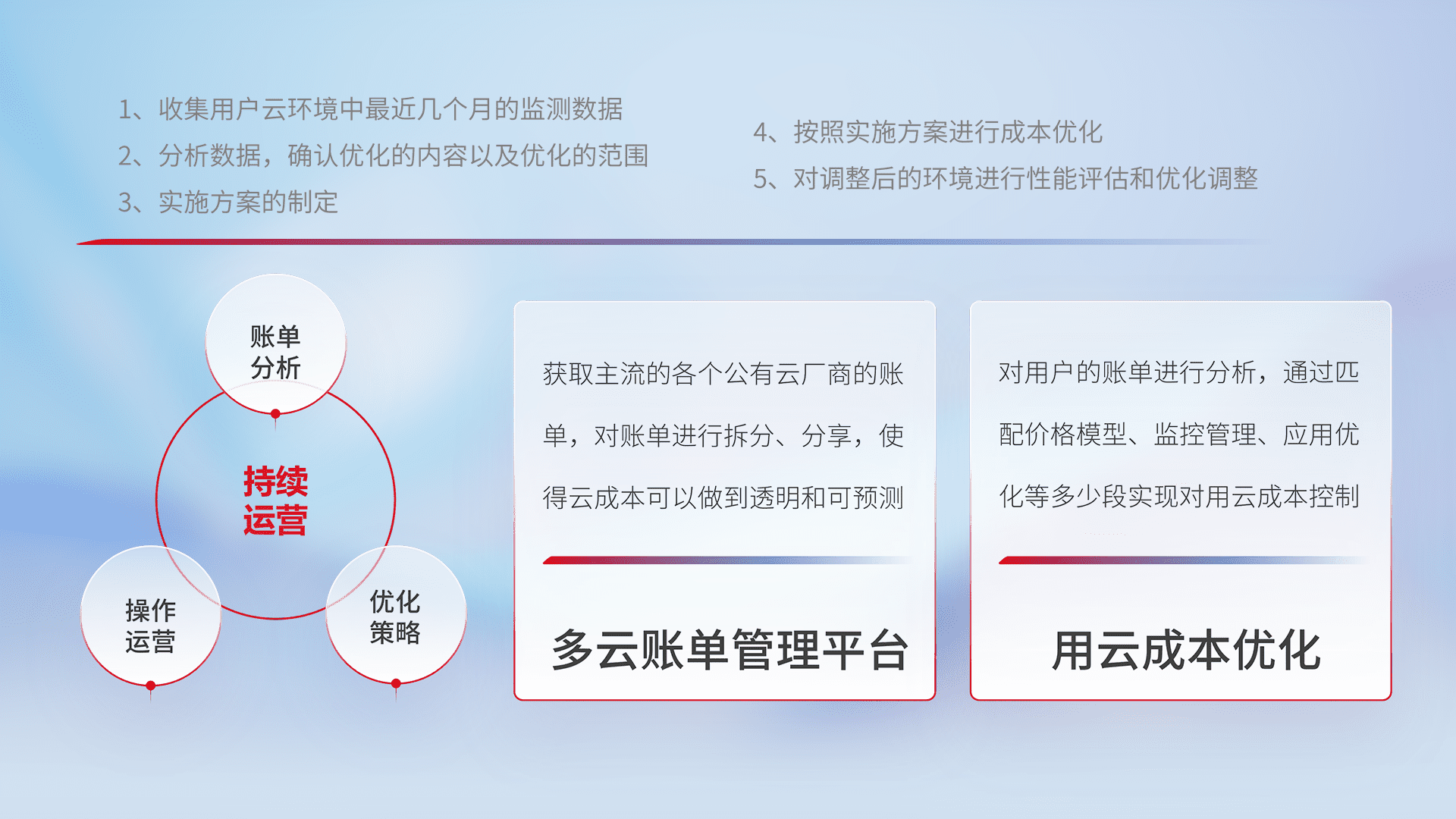 运用智能化工具分析云资源,,提供日常费用可视化工具,,,自动账单拆分,,,,成本优化云上费用,,,,降本增效。。。。